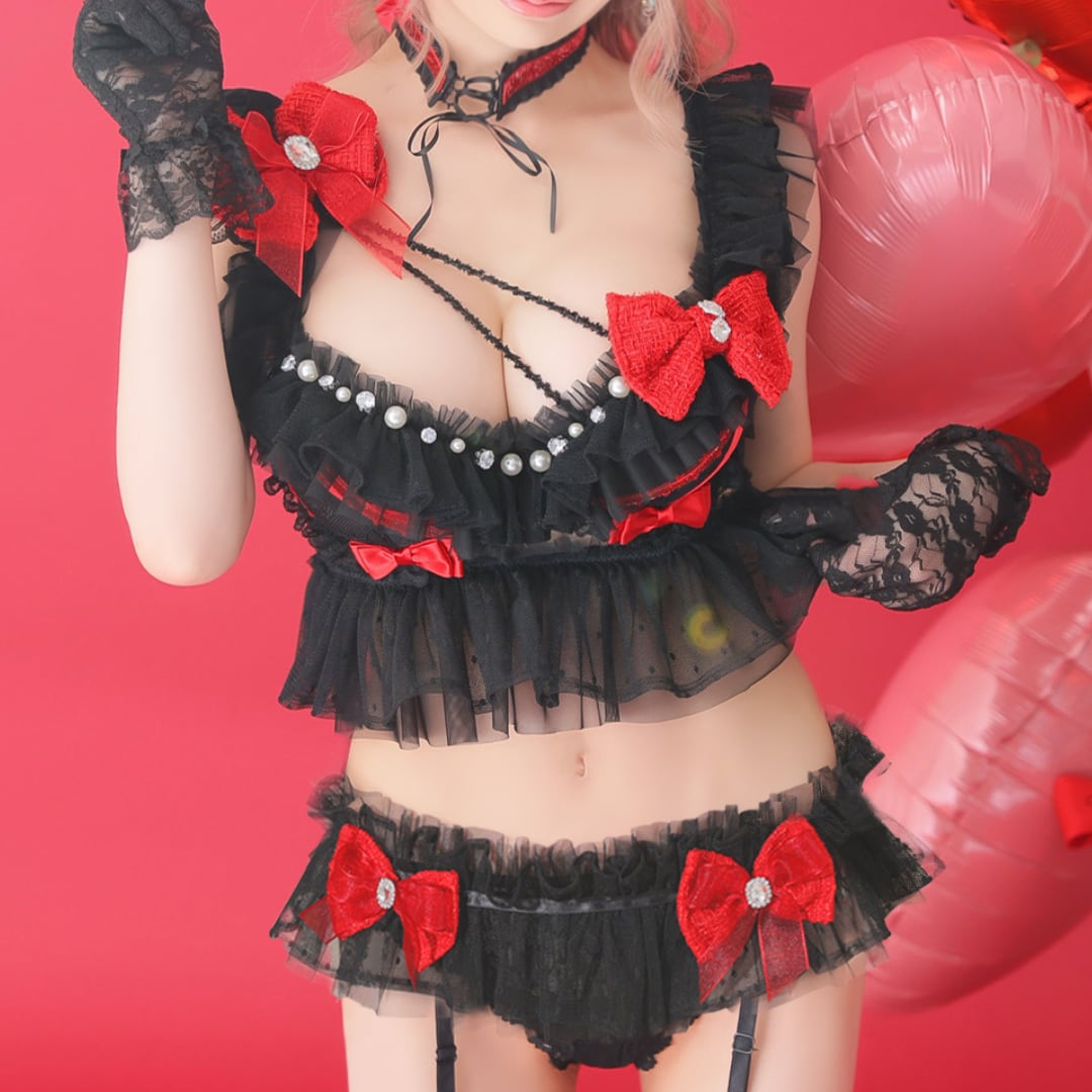 SET内容:ブラ・チョーカー・ウエストフリル・ショーツ(4点SET)